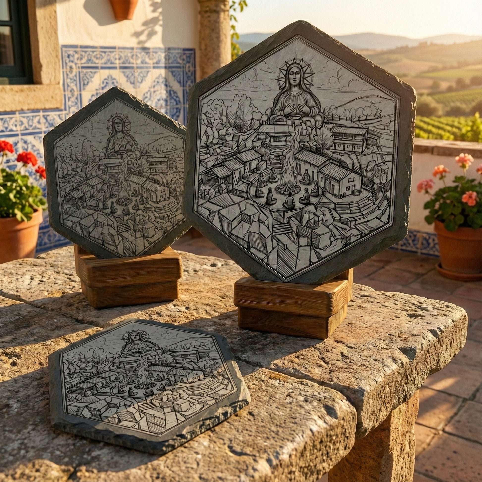 Signal Slate™ — Gathering merges natural stone with Jeremy Morton's refined linework, drawing inspiration from spending time in the ancient hills shared with like souls. The 4″ Orada slate is an intimate object of presence.